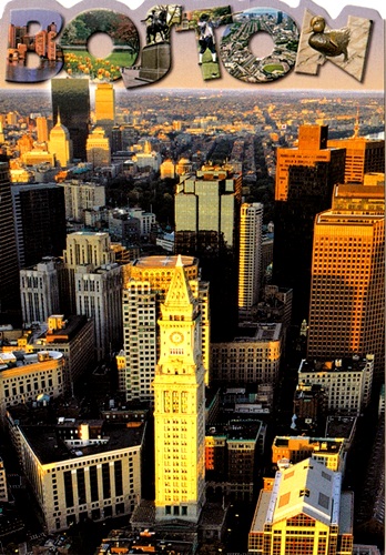 Mary Jones sent me a unique card of Boston Custom House. I really enjoy the cityscape of Boston through that aerial view card. Built in 1843 at the water's edge, the 25 story tower was added to the Custom House in 1915. It stood alone as a landmark for incoming ships and was Boston's tallest building for 30 years. Mary told me that she has a picture of it in 1901 with just nothing around it. I wonder it might look so great.